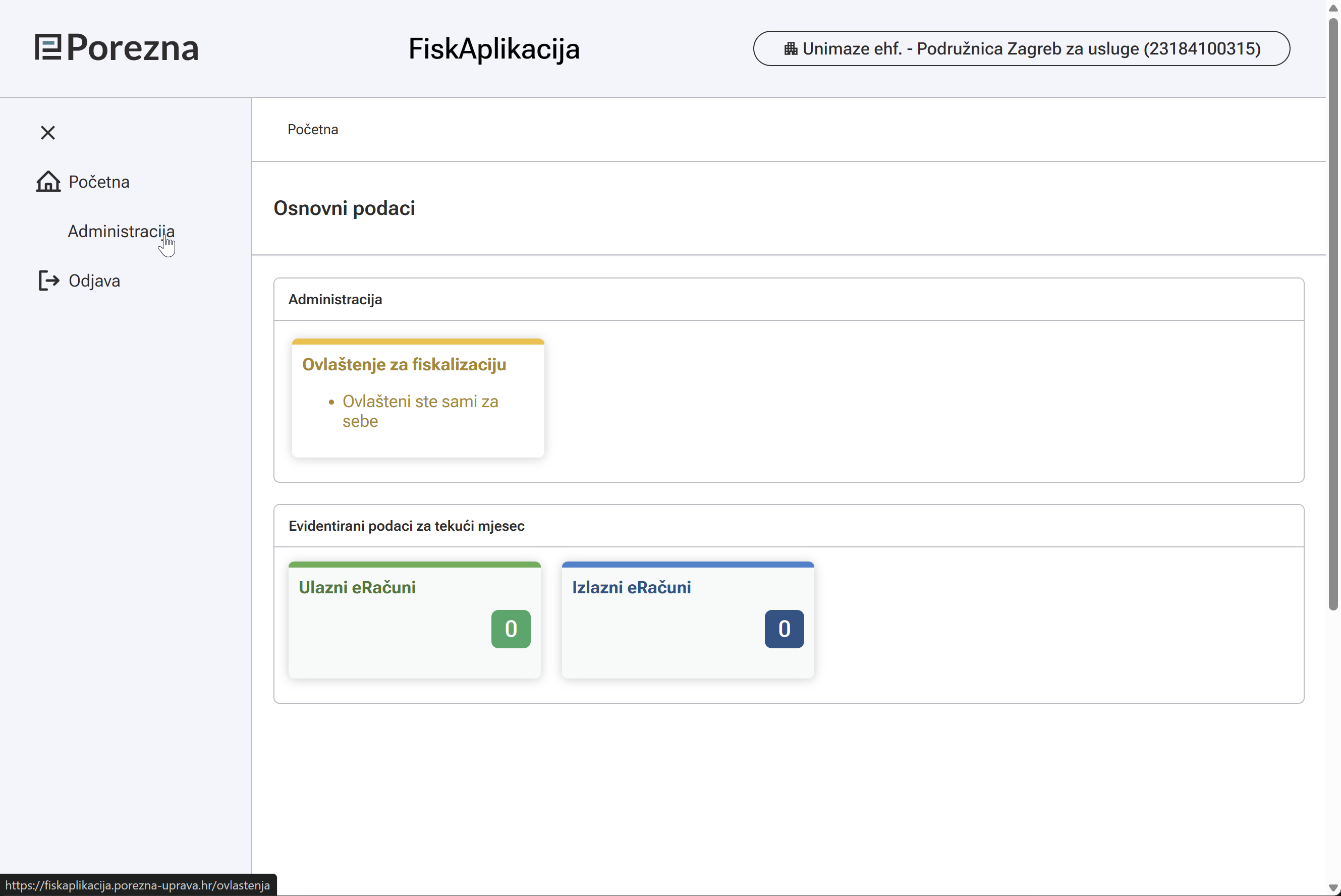 For Unimaze to send reports to the Croatian Tax Authority on behalf of the client, it must be registered with Ministarstvo Financija, Porezna Uprave via their web site.