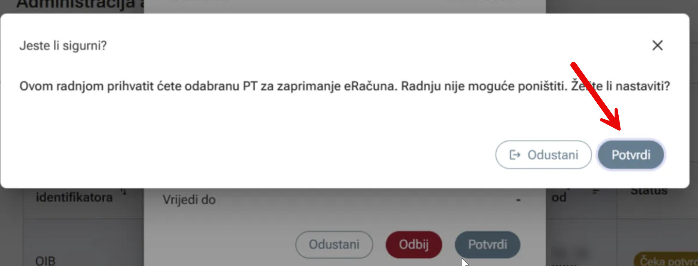 You will be presented with a confirmation dialog. Click Potvrdi (Confirm) again.